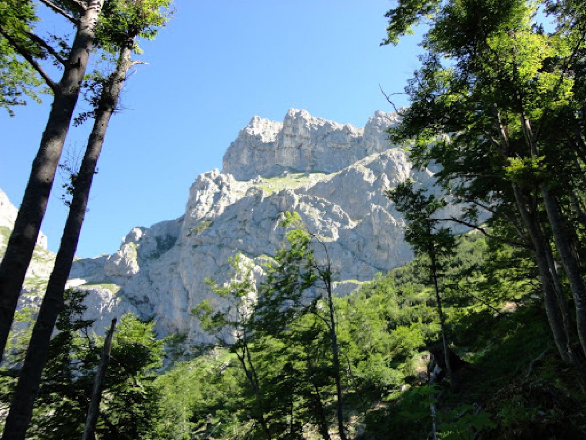 V piatok Dušan a Tomáš vyrazili skoro ráno smer Rakúsko, konkrétne Národný park Gesäuse a ešte konkrétnejšie kemp Forstgarten Gstatterboden. Tu sme po príchode postavili náš nový stan Husky Falcon (môžeme len odporučiť) a pre 11. hodinou sme začali šliapať na Grosser Buchstein. Bol to celkom neskorý čas na tak náročnú a dlhú túru, ale vedeli sme, že predpoveď počasia je priaznivá. Najprv sme stúpali ponad údolie rieky Enns a križovali lesné. štrkové cesty. Pri údolnej stanici materiálovej lanovky sa charakter chodníka zmenil na skutočný úzky lesný chodník. Po serpentínach sme vyšli na chatu Buchsteinhaus (1571 m n.m.). Tu sme počas krátkeho oddychu urobili zásadnú chybu. Dali sme si schuti jedno pivo. Na chatou vedie chodník kosodrevinou a medzi skalami a boli sme celý čas na slnku. Síce sme sa nespálili vďaka ochranným krémom, ale zato pivo nám spôsobilo "olovené nohy". Ledva sme sa vliekli. K nástupu na feratu Südwandbandsteig to bolo ešte niekoľko stoviek výškových metrov.