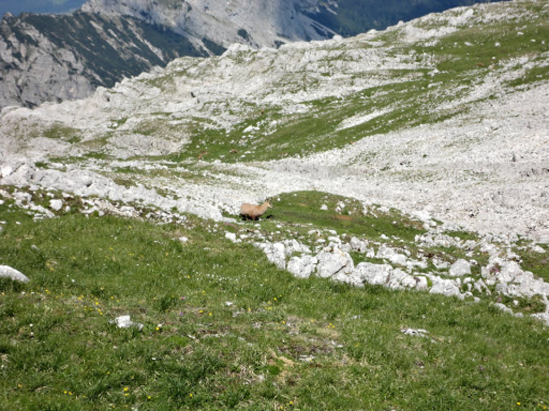 Zostup dolu bol možno najťažším úsekom feraty, pravdepodobne náročnejší ako výlez komínom. Minulá rok sme túto feratu vynechali, pretože sme boli veľmi unavení a netrúfali sme si na ňu. Tento rok sme si ju nenechali ujsť. Stála ozaj za to. Peter si zvolil zostup nepríjemným chodníkom západným smerom, zatiaľ Dušan a Tomáš sa vybrali ešte na vrchol Hochblaser a zostúpili späť na parkovisko veľkým oblúkom okolo jazera.