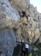 Druhý deň sme sa stretli s Petrom a Silviou na parkovisku pri Gemeindealm.a začali sme šliapať k nástupu feraty Kaiserschild. Nástup na túto feratu je celkom dlhý a náročný. Najprv sa ide spevnenou cestou, z ktorej sa prechádza na chodník v lese a nakoniec pod stenami Kaiserschildu sa chodník klukatí v suťovisku. Čas uvádzaný v sprievodcovi (www.bergsteigen.com) je 1,5 hodiny poctivého lezenia. Hneď nástup preverí sily. Neskôr sa náročnosť na chvíľu zmierni, ale stredná čas je veľmi ťažká. Lezec je už unavený a treba preliezť kľúčové miesto, ktorým je traverz obtiažnosti D/E a s následným výšvihom obtiažnosti D. Tu sme sa na chvíľu zasekli, pretože Silvia bola veľmi unavená a veľmi si neverila, že ju ruky udržia v náročnom traverze. Po pár neúspešných pokusoch sme začali zvažovať ako ďalej, ale vtedy Silvia zabrala a traverz preliezla.