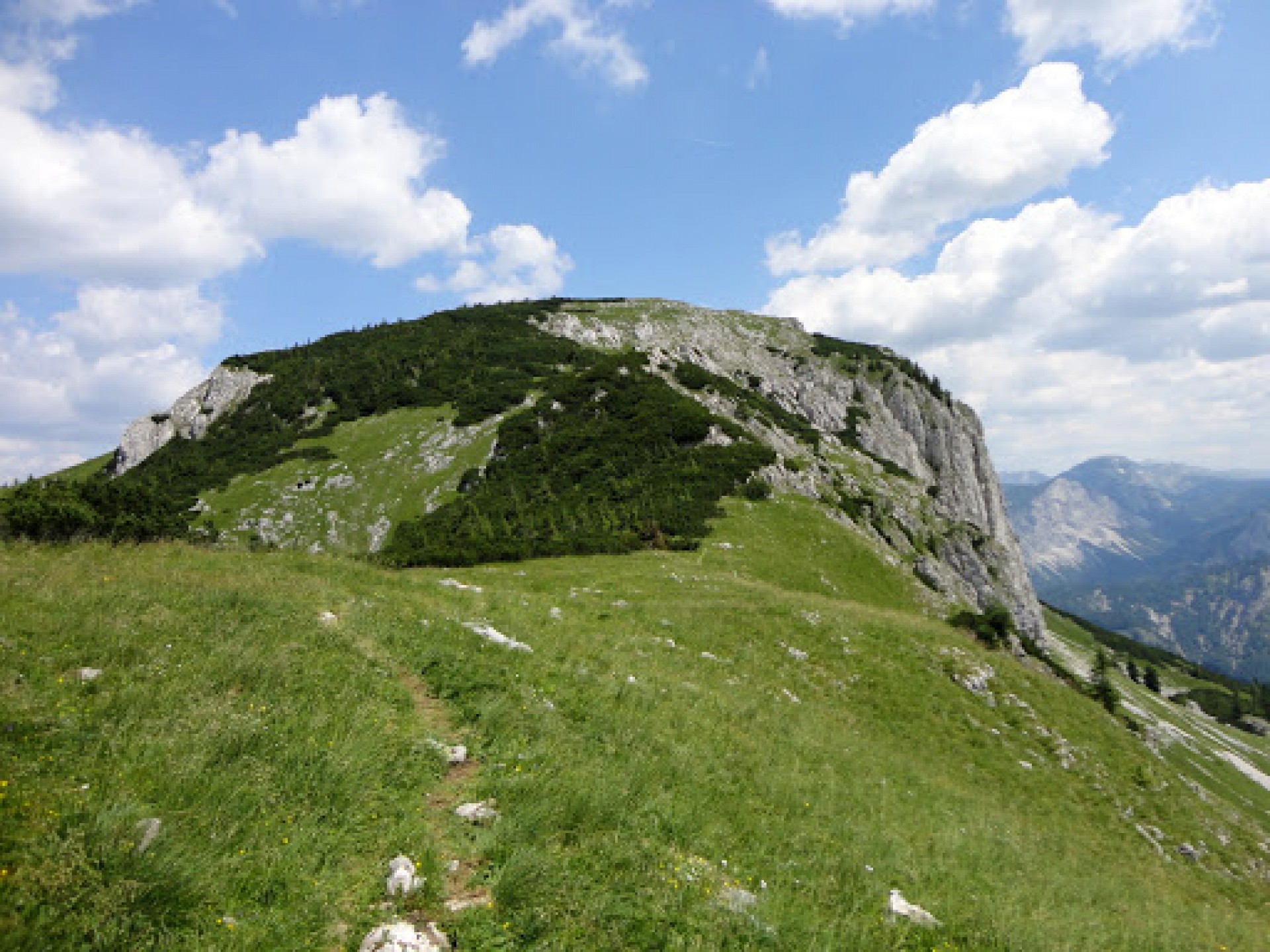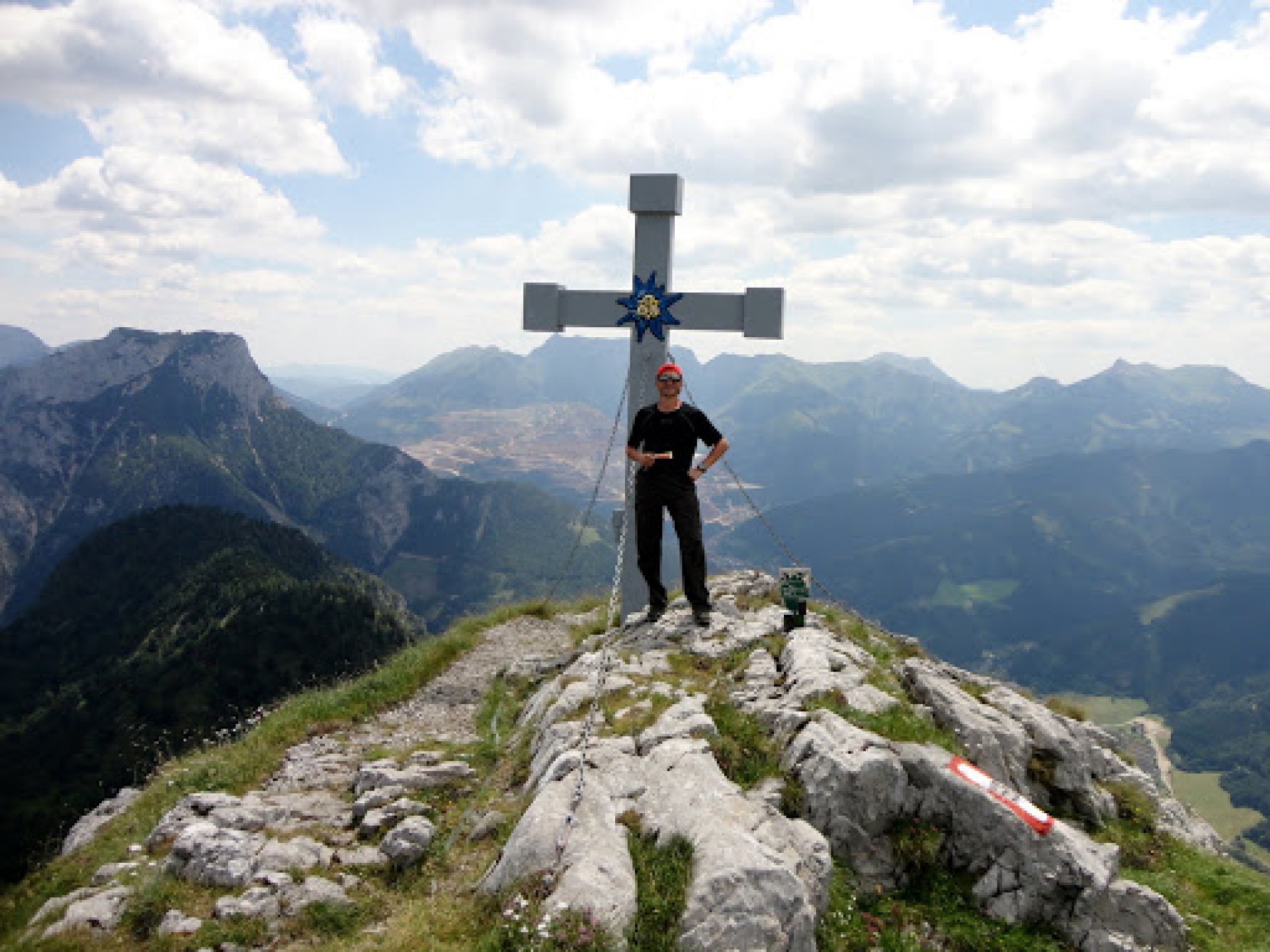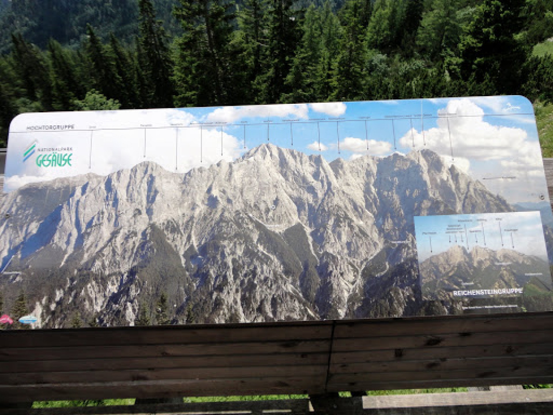 Na ferate sa neistota vytratila a prešli sme ju úplne v pohode so stále nádhernýmni výhľadmi na protiľahlý Hochtor. Samotná ferata nie je vôbec ťažká, skôr je to zaistený chodník s niekoľkými exponovanými úsekmi. Od konca feraty sme ešte vyšli na samotný vrchol Grosser Buchstein (2224 m n.m.). Občerstvili sme sa, odfotili a začali zostupovať dolu. Zostúpiť sa dáva dvomi cestami - Wengerweg (lezenie obt. I-II) alebo normálka. Vybrali sme sa normáikou, ktorá je nenormálna. Úzkym šotolinovým žľabom treba zísť pod skaly, ďalej traverzovať masív až k nástupu feraty a zísť až na chatu Buchsteinhaus. Hlavne začiatok prudkého klesania je veľmi nepríjemný a nebezpečný. Tam by sa hodilo aj nejaké to lano. Bezpečne sme prišli na chatu a dali sme si výdatnú skorú večeru alebo veľmi neskorý obed. Po lesnom chodníku sme zišli ku štrkovej ceste a rozhodli sme sa ísť po lesných cestách a nie krížom po chodníku. Na jednom mieste sme minuli odbočku a tak sme si nadišli až k začiatku chodníka na Ennstalerhütte.