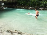 Najnáročnejší bol zostup po trávnato-sutinovom strmom svahu. Na chate sme zbalili všetky veci a zostúpili až do údolia na parkovisko. Pred samotným odchodom sme absolvovali kúpeľ v horskej riečke. neviem odkiaľ vytekala, ale bola neskutočne studená, až ľadová. Peter si omočil len nohy, zato Martin si aj zaplával využijúc protiprúd. Takto osviežení sme frčali späť domov.