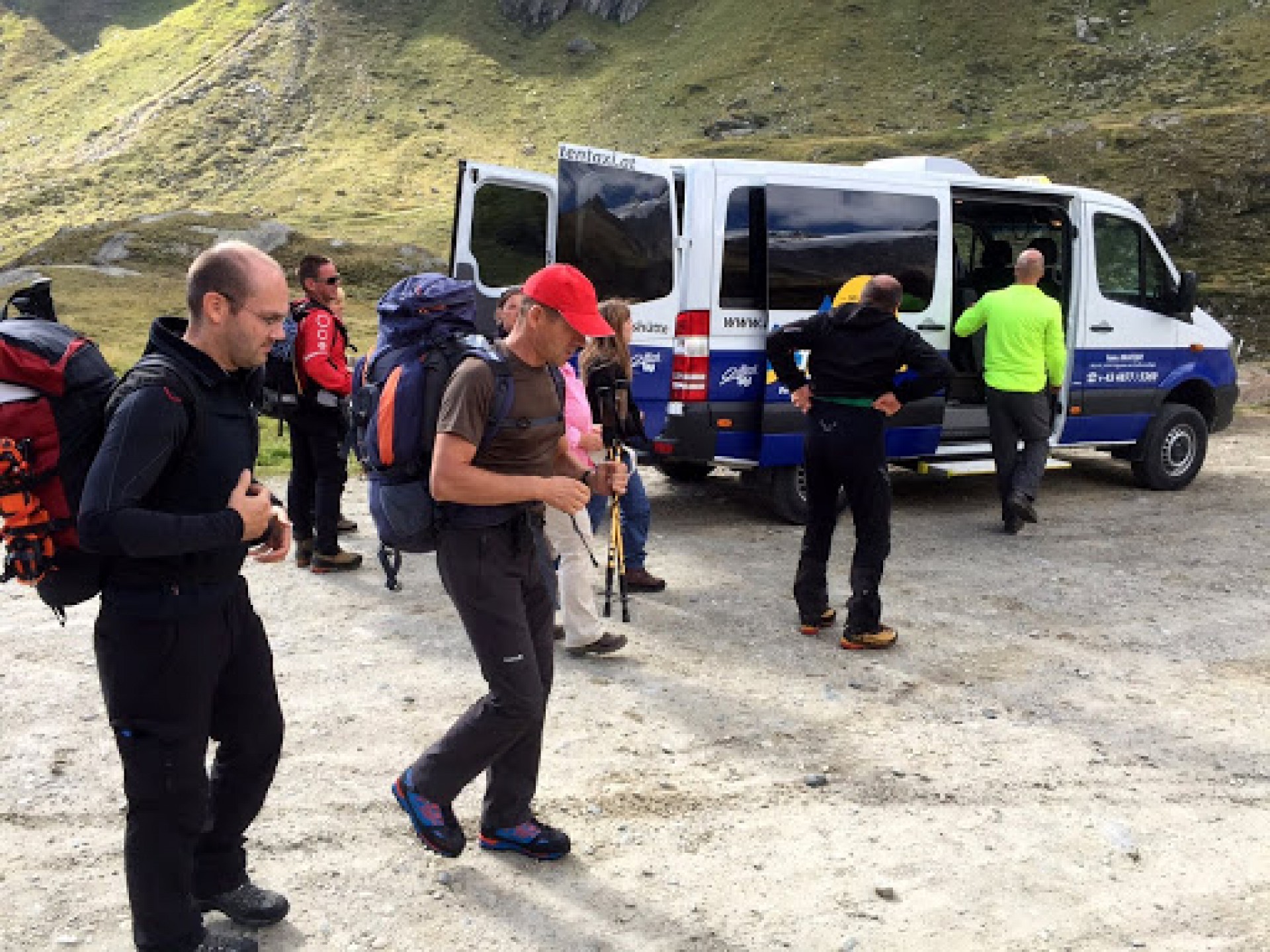 Po príjazde do obce Hinterbichl sme museli nechať auto na platenom parkovisku, pretože všetky parkovacie miesta v obci boli obsadené. Dohodli sme si taxík na chatu Johannishütte a ušetrili sme ľ hodiny šliapania po šotolinovej ceste. Po neskorom obede sme vyrazili na chatu Defreggerhaus, kde sme sa po 2 hodinách zložili v slušne obsadenom lágri.