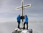 Celý výstup fúkal veľmi silný nárazový vietor a museli sme si dávať veľký pozor, aby nás nesfúkol z hrebeňa. Na samotnom vrchole sme sa zdržali veľmi krátko, pretože vietor bol veľmi nepríjemný a výhľady absolútne žiadne. Nasledoval náročnejší zostup feratou Detmolder Steig. Niektoré pasáže boli dosť exponované a hlavne vrchné úseky zasnežené, ale lano nebolo pod snehom. Nebezpečný úsek ľadovcom sme obišli pravdepodobne novšou trasou feraty. Bezpečne sme zišli do sedla Winkelscharte a odtiaľ už len po kamennom chodníku späť ku chate. Pôvodný plán bol zostúpiť k autu a pokračovať domov. Boli sme však veľmi unavení a po telefonátoch domov sme sa rozhodli zostať ešte jednu noc a domov ísť až nasledujúci deň.