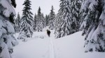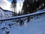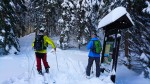 V sobotu ráno sme frčali do požičovne, kde si Tomáš a Martin požičali skialp výbavu a na základe odporúčania sme sa vybrali smerom na Tri vody od Mikulášskej chaty. Stúpali sme popri potoku Zadná voda prekrásnym, zasneženým lesom až po rázcestník Tri vody. Tu sme sa zvrtli doľava a pokračovali na brhliská. Do sedla pod Poľanou sme to nechceli riskovať po poslednom, masívnom snežení. Po krátkej chvíli sme boli na Brhliskách. Odtiaľto sme si razili stopu sami až pod Orlovú skalu, kde nastali problémy. V strmom svahu sme sa zabárali a bojovali o každý meter. Po dosť dlhej dobe a v hmle sme dorazili na zjazdovku nad Lúkovou. Nasledoval už len prudký výšvih K Rotunde na Chopku. kamenná chata bola ako vždy nabitá, tak sme sa občerstvili v Rotunde. Na Chopok sa nám už nechcelo a po zjazdovkách sme zbehli späť na Bielu púť, pretože Martin musel ísť domov a predtým musel vrátiť lyže.