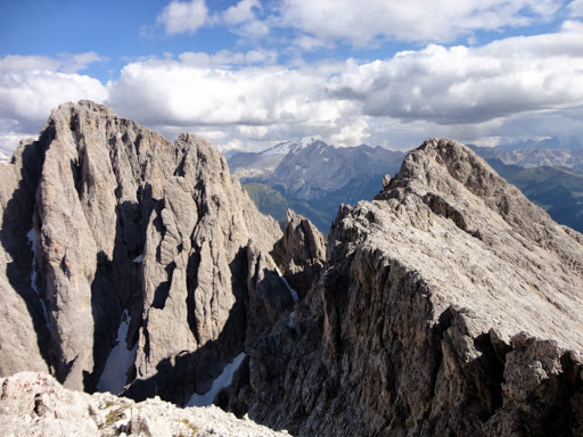 Druhý deň začínal polooblačným počasím, ktoré sa nakoniec vylepšilo. Keďže prvý deň bol náročný, tak tento deň mal byť ľahší. Cieľom bol masív Sella a najvyšší vrchol Piz Boe (3152 m n.m.). Opäť sme sa rozdelili na dve skupiny - turistická skupina a dvoch feratistov, Tomáša a Dušana. Turisti využili lanovku, ktorou sa vyviezli od parkoviska v sedle Passo Pordoi na Sas de Pordoi k chate Rifugio Maria. Následne sa vydali po náhornej plošine masívu Sella k ďalšej chate Rifugio Boe. Z tejto skupiny sa oddelila menšia skupina - Rišo, Naďa a Roman, ktorí vystúpili až na samotný vrchol Piz Boe. Tu sa streli s feratistami, ktorí vyšli na vrchol po ferate Via attrezzata Cesare Piazetta. Po zostupe z vrcholu sme sa všetci opäť stretli v chate Rifugio Maria.